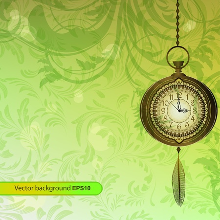 緑の花の枝と懐中時計の抽象的な壁紙 のイラスト素材 ベクタ Image